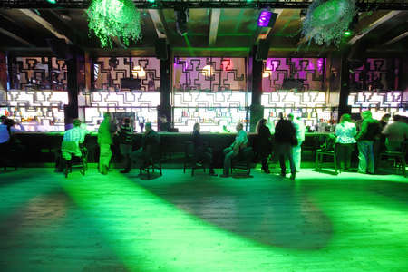 モスクワ ロシア連邦 8 月 28 日 空のダンスフロア長い 10 年 8 月 28 日 ロシアのモスクワで夜のクラブでグリーン ライトの人々 とバーの近く ロシアでは 10 年の 1 5 千夜のクラブを登録します の写真素材 画像素材 Image